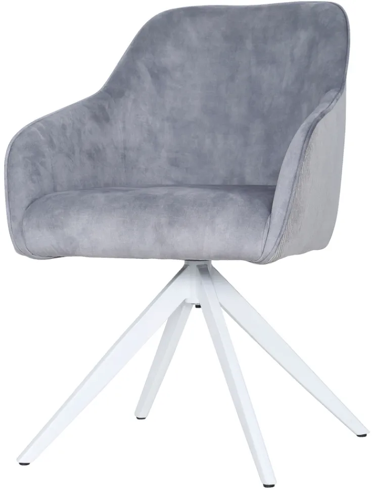 Modern und auch sehr einladend präsentiert sich Armlehnstuhl GENT in Hellgrau / Weiß. Sein elegantes Fußkreuz aus pulverbeschichtetem Metall lässt sich manuell um 360° drehen.