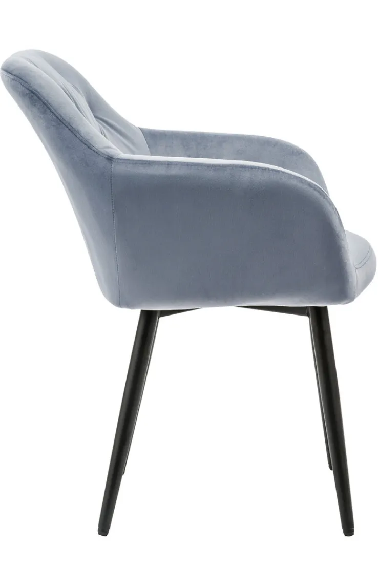 Der CASAVANTI Armlehnstuhl kombiniert eine gemütlich gepolsterte Sitzschale mit einem modernen Metallgestell. Die schwarzen Beine stellen einen aparten Kontrast zum weichen Textilbezug aus hellgrauem Samt dar. Die schicke Sitzgelegenheit passt in Wohn- oder Speisezimmer und kann bei Bedarf auch im Büro oder im Schlafzimmer Verwendung finden. Wer will, kann auch mehrere Exemplare in verschiedenen Farbtönen miteinander kombinieren.