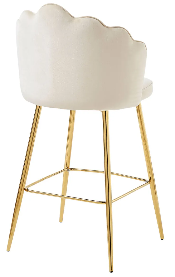 Das CASAVANTI Set besteht aus 2 Barhockern mit einer Sitzhöhe von jeweils 68 cm. Highlight der Stühle ist die dekorative Muschelform der halbrunden Lehne. Sie sorgt auch bei längerem Sitzen für maximale Bequemlichkeit. Der pflegeleichte beige Samtbezug ist mit senkrechten Abnähern versehen und verstärkt den edlen Look der attraktiven Kombination. Ergänzt wird der elegante Eindruck durch ein Gestell ist aus goldfarbigem Metall. An allen vier Seiten können die Füße lässig abgestützt werden.