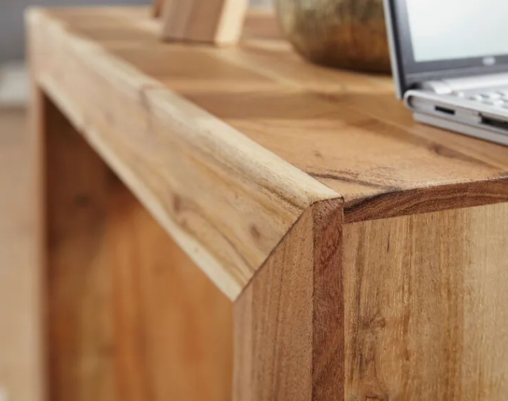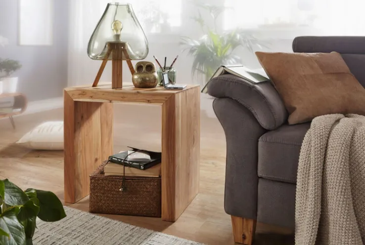 Attraktiv und vielseitig: Der CASAVANTI Beistelltisch MUMBAI 60 x 36 cm Akazie. Der Tisch aus Massivholz passt zu traditionellen wie modernen Einrichtungsstilen.