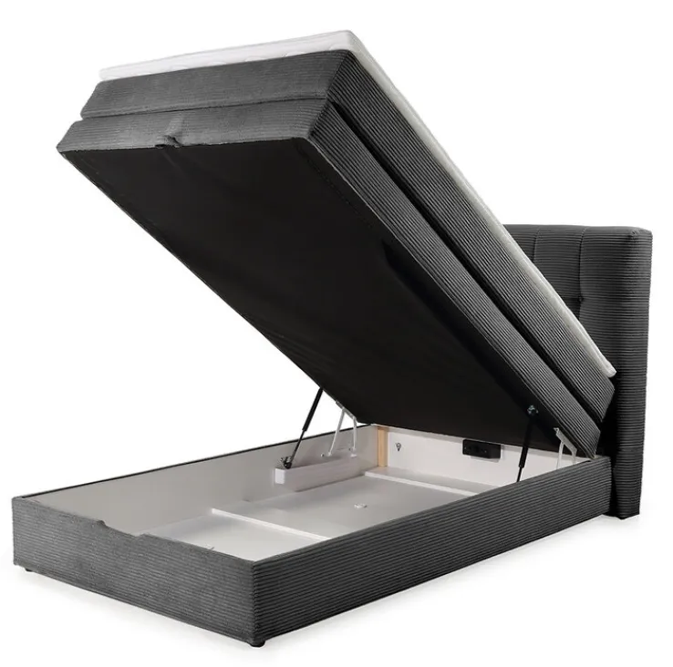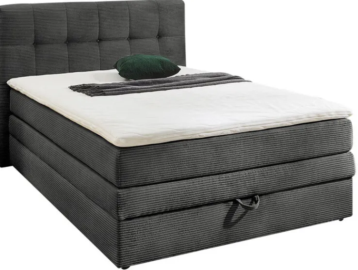 Das 120 x 200 cm große CASAVANTI Boxspringbett AMY im Farbton Cord Grau ist perfekt für Einzelschlafzimmer. Es kombiniert stilvolles Design mit hohem Liegekomfort und Stauraum.