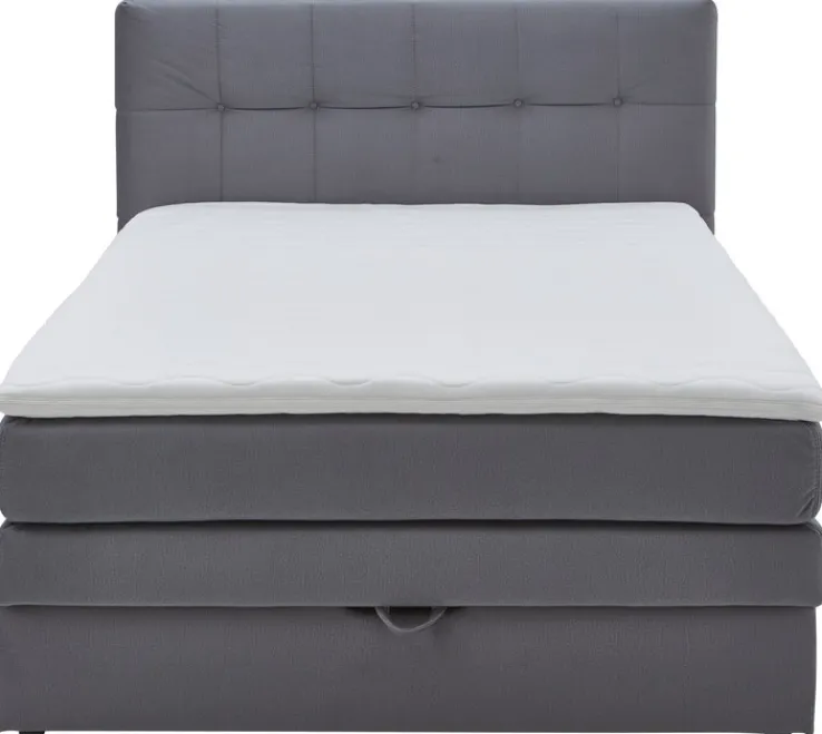 Höchsten Schlafkomfort bietet das 140 x 200 cm große Boxspringbett AMY in Grau. Der Unterbau besteht aus einer Bettkastenbox und einem Matratzenrahmen mit Bonell-Federkernpolsterung. Darauf sind eine 7-Zonen Tonnentaschenfederkernmatratze mit Härtegrad H3 und ein Kaltschaum-Topper aufgelegt.