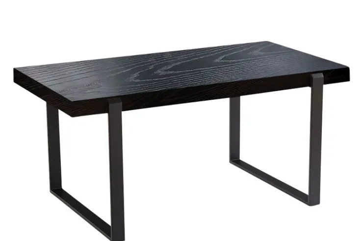 An dem rechteckigen CASAVANTI Esstisch wird gespeist und getrunken, gelacht und gefeiert, gestritten und wieder versöhnt. Seine 80 mm dicke Tischplatte in schwarzer Eichenoptik strahlt eine robuste Langlebigkeit aus. Das elegante Kufengestell aus schwarzem, pulverbeschichtetem Metall fügt eine Prise Leichtigkeit hinzu. Mit einer Breite von 90 cm und einer Länge von 160 cm können 6 Personen gut an dem Tisch Platz nehmen.