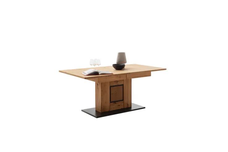 Der CASAVANTI Esstisch ASSINI ist ein massiver Säulentisch in Ast/Balkeneiche in den Farben Anthrazit und Braun. Die Tischplatte ist 180 Zentimeter lang und kann auf 230 cm ausgezogen werden. Mit einer Breite von 100 cm und einer Höhe von 77 cm ist dieses Modell der perfekte Esstisch für mehrere Personen. Die geölte Oberfläche aus Eichenholz verleiht dem Tisch eine moderne und gleichzeitig rustikale Optik.