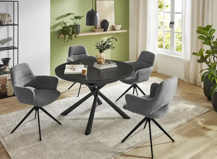 Ein ebenso schönes wie praktisches Kunstwerk ist der 120 cm MYLOS Esstisch von CASAVANTI in Anthrazit allemal: Das garantieren schon die Standbeine, die bei diesem Tisch auf geschickte Weise überkreuz angebracht wurden. Das natürlich nicht grundlos: Der Esstisch ist bei Bedarf nämlich noch auf einen Durchmesser von 160 cm ausziehbar.