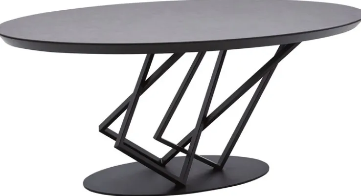 Der oval geformte Tisch hat eine Höhe von 76 cm. Er überzeugt durch sein raffiniertes Design, dadurch wird der Esstisch zum Blickfang in jedem Ess- und Wohnbereich! Die Tischplatte besteht aus hochwertiger Glaskeramik im Farbton Dunkelgrau. Das Gestell und der Tellerfuß setzen sich in Schwarz davon harmonisch ab. Der Tisch ist sehr stabil, er wirkt aber durch das auffallend gestaltete Gestell, als ob er schweben würde. Der Tisch bietet Platz für 6 Personen. Für ein modernes Wohngefühl mit der Leichtigkeit des Seins! Zum gemeinsamen Essen, Spielen und Reden.