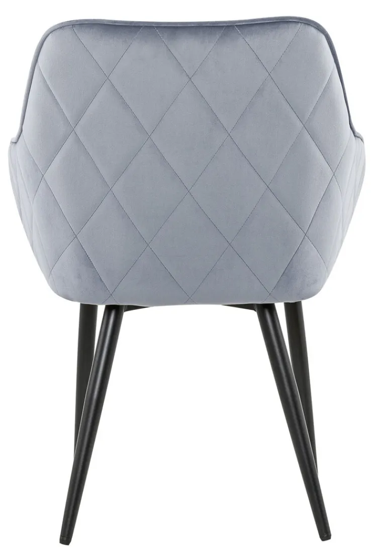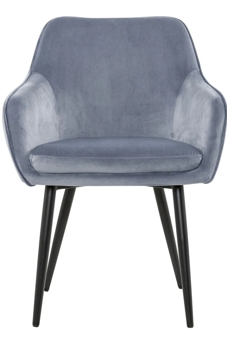 Dieser Stuhl ist im modernen Design gehalten und weist eine Breite von 61 cm, eine Höhe von 85 cm sowie eine Tiefe von 60 cm auf. Er ist dank seines kreativen Kontrastes aus pulverbeschichtetem Metallgestell in schwarzer Farbe sowie grauem Textilbezuges ein Hingucker in jedem Esszimmer. Darüber hinaus gefällt der Stuhl auch durch seine festen Armlehnen, die ihm eine besondere Form verleihen und zudem dafür sorgen, dass man sehr bequem sitzt.