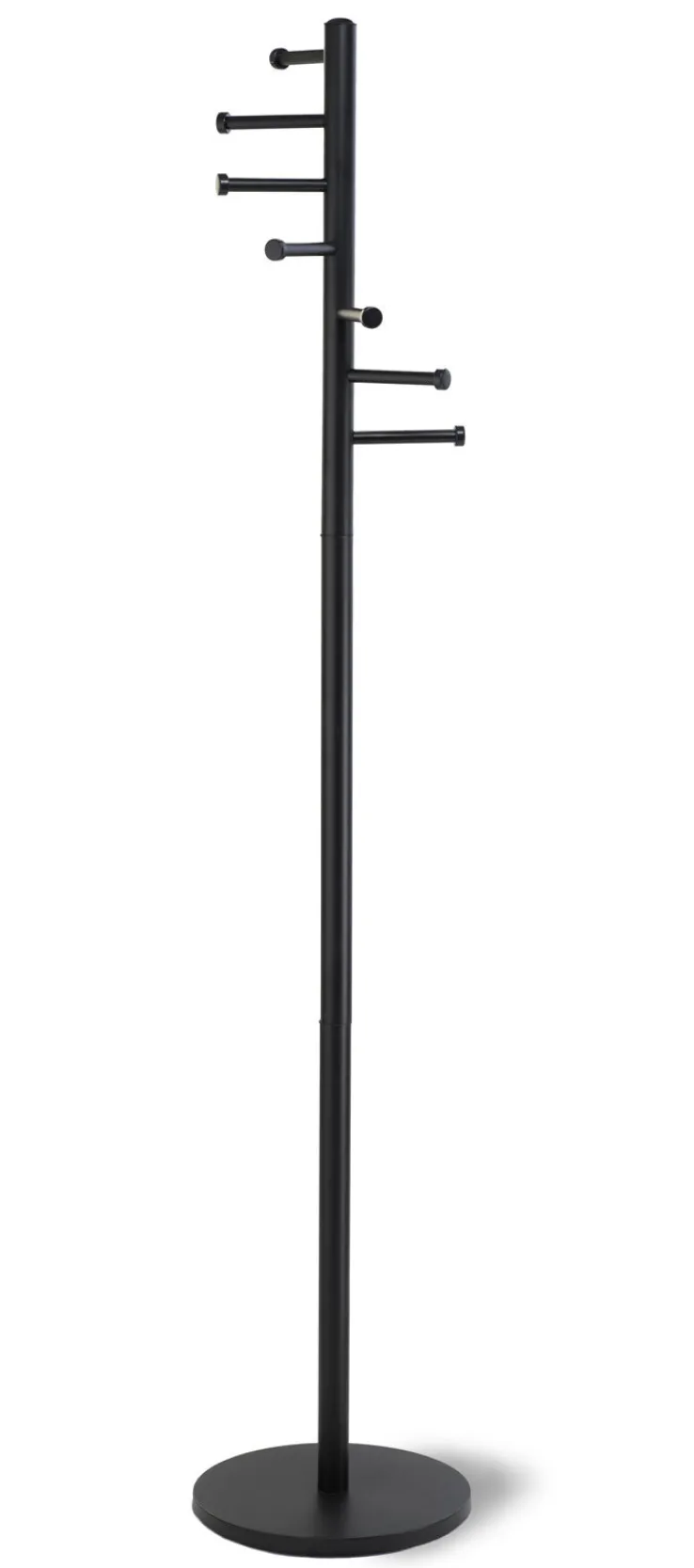 Sechs Haken, eine Stange, schwerer Standfuß – der Kleiderständer EUGEN schwarz von CASAVANTI ist schlicht und funktional gestaltet. Das pulverbeschichtete Metall gibt dem Kleiderständer mit seinen 177 cm Höhe eine matte Oberfläche.