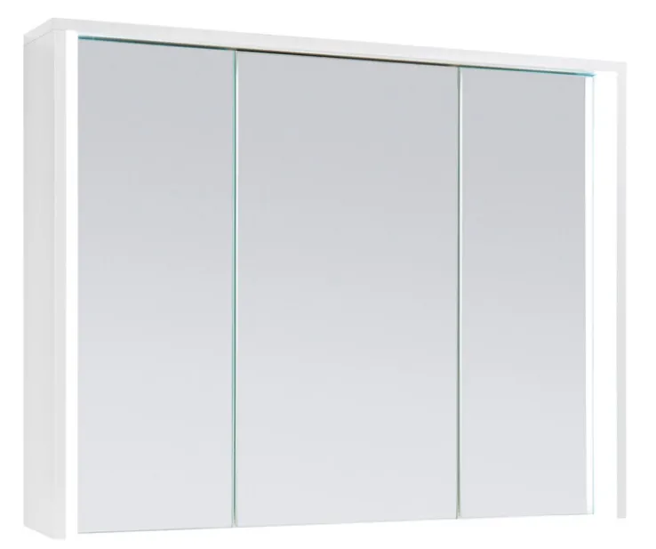 Insbesondere in modern eingerichteten Badezimmern kann der Spiegelschrank Akzente setzen. Sein Design ist minimalistisch und sehr funktional. Praktisch ist die Beleuchtung, die fest in den Spiegelschrank integriert ist. Die nötigen Stecker und Schalter sind bereits mit dabei. Insgesamt verfügt der Schrank über drei Drehtüren, hinter denen sich Hygieneartikel geschützt vor neugierigen Blicken aufbewahren lassen. Der Badschrank enthält sechs Einlegeböden, die reichlich Platz bieten. Interesse auf mehr geweckt? Weitere schöne Badmöbel lassen sich in unserem großen Shop ebenso entdecken.