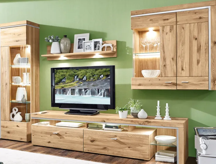 Die CASAVANTI Wohnwand schafft Platz für die Aufbewahrung all der praktischen Dinge im Wohnzimmer und besticht durch ihre schöne Holzoptik.