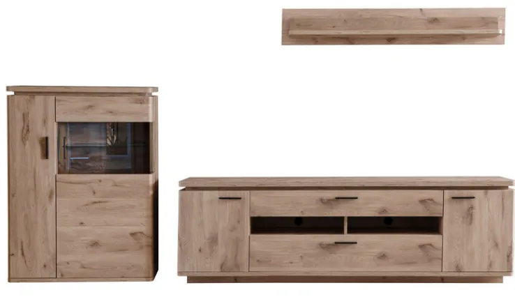 Setartikel: jaAnzahl Teile im Set: 3 Stk.Breite Setartikel 1: 90 cmHöhe Setartikel 1: 124 cmTiefe Setartikel 1: 38 cmSetartikel-Inhalt 1: HighboardAnzahl Setartikel-Inhalt 1: 1 Länge Setartikel 2: 210 cmTiefe Setartikel 2: 50 cmHöhe Setartikel 2: 65 cmSetartikel-Inhalt 2: TV-LowboardTiefe Setartikel 3: 19 cmBreite Setartikel 3: 150 cmHöhe Setartikel 3: 24 cmSetartikel-Inhalt 3: WandboardAnzahl Schubkästen inklusive: 2Anzahl Beleuchtungen inklusive: 2Anzahl Drehtüren inklusive: 4