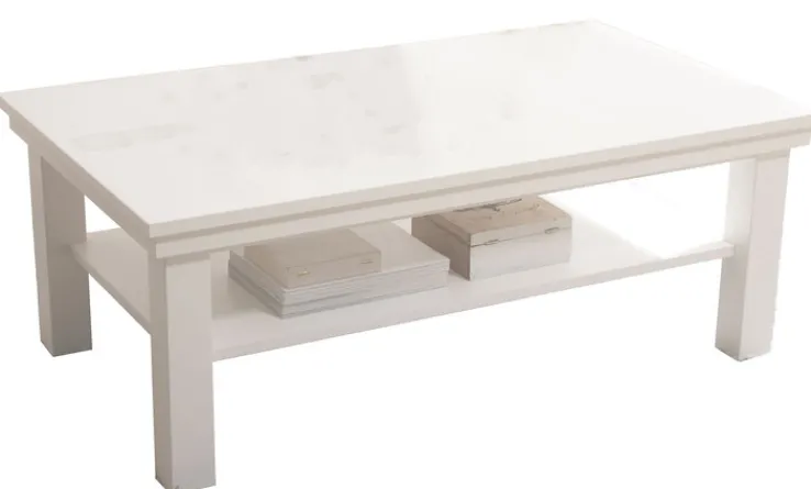 Dieser schlichte aber elegante Couchtisch mit kompakten Maßen von 120 x 45 x 70 cm ist aus einer robusten Holznachbildung gefertigt und in einem schnörkellosen, modernen weiß lackiert.