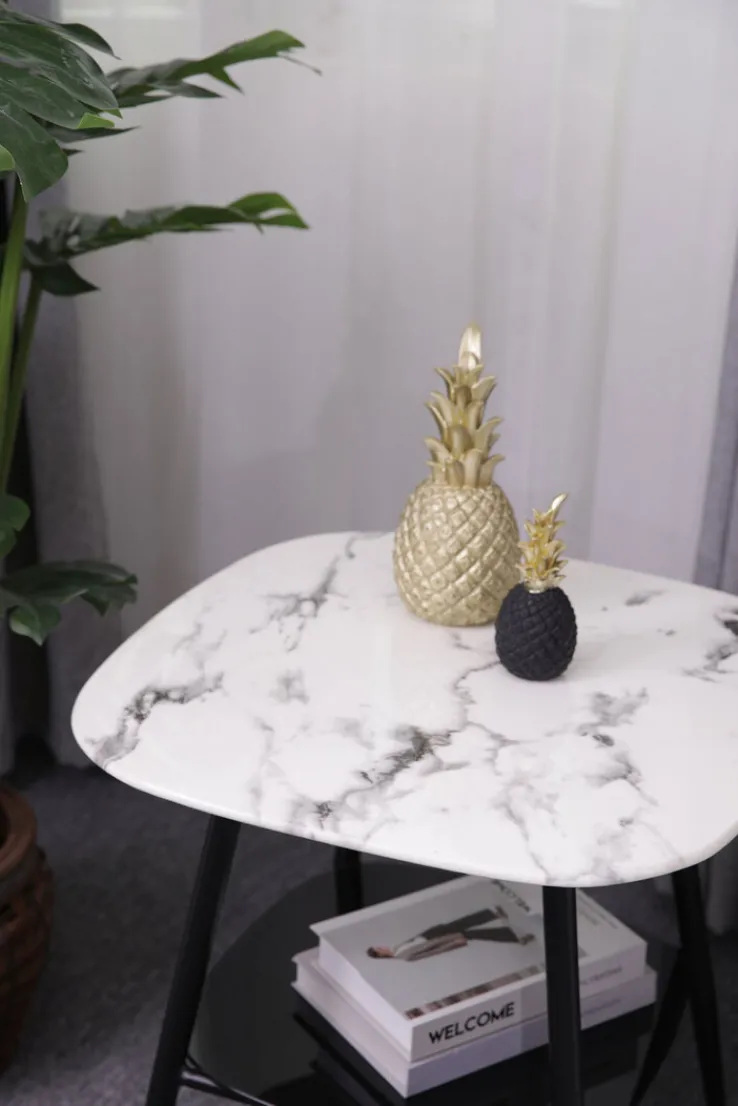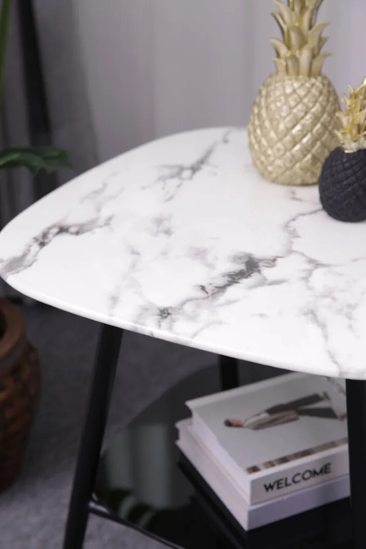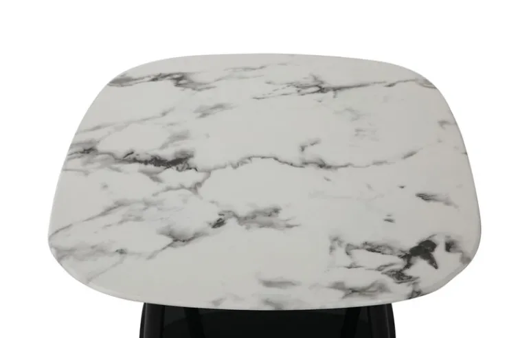 Der qualitativ hochwertige Couchtisch ein 55 x 55 cm großes Modell – ist in den Farben Schwarz und Weiß gefertigt und bezaubert mit seiner eleganten Marmorierung. Mit seinem quadratischen und kompakten Format eignet er sich prima für Couchlandschaften, die mit einer Chaiselongue oder Ottomane daherkommen.