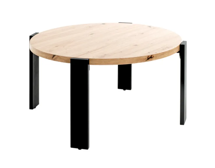 Der moderne Tisch für den Wohnbereich wiegt 11,50 Kilogramm und kann mit einem Gewicht von 35 Kilogramm belastet werden. Daher eignet sich das Modell auch für den Nachmittagskaffee oder einen Snack am TV-Abend. Die runde Tischplatte aus mitteldichter Faserplatte hat eine Plattenstärke von 30 Millimetern. Der Tisch ist für den Innenbereich konzipiert worden und kann sowohl einzeln als in Kombination mit Beistelltischen arrangiert werden.