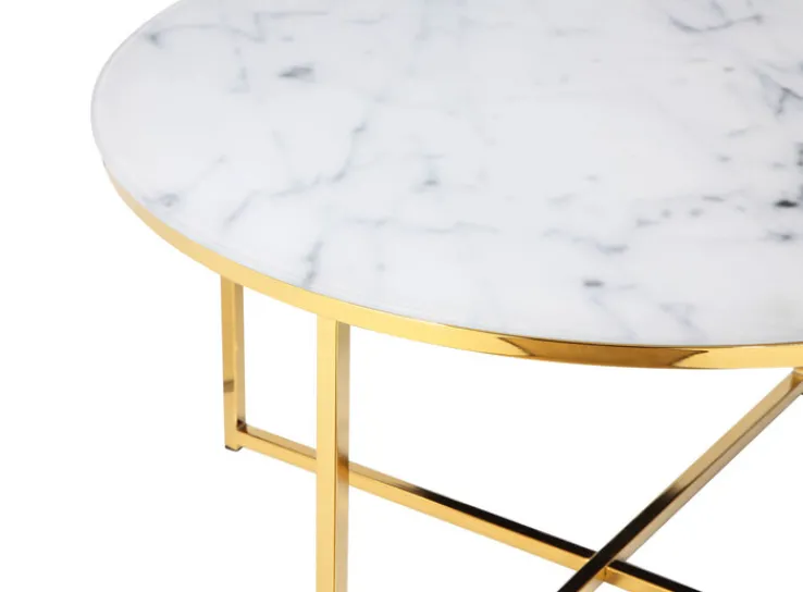 Im noblen Industrial Stil präsentiert sich dieser Couchtisch 80 x 80 cm rund in Gold/Weiß. Genau das Richtige für kleine Wohnungen oder als eleganter Beistelltisch!