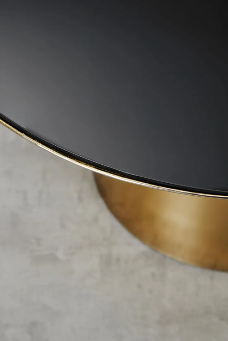 Der runde Couchtisch GAJETTA hat die Maße 80 x 45 cm und präsentiert sich elegant in einem zeitlosen Design. Durch das goldfarbige Säulengestell und die Tischplatte aus schwarzfarbigem Glas ist der schöne Tisch ein Blickfang in modernen Einrichtungen. Vor einem Ecksofa oder einer Polstergarnitur kommt der Tisch besonders gut zur Geltung. Der Couchtisch setzt in jedem Wohnzimmer Akzente und trägt zu einem gemütlichen Ambiente bei.