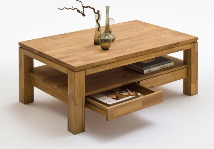 Der moderne Couchtisch ist aus massiver Kernbuche gefertigt und abschließend gewachst. Das verwendete Massivholz strahlt