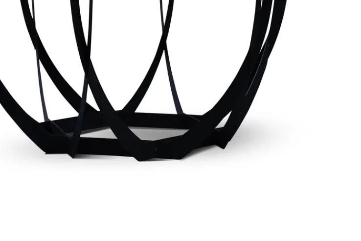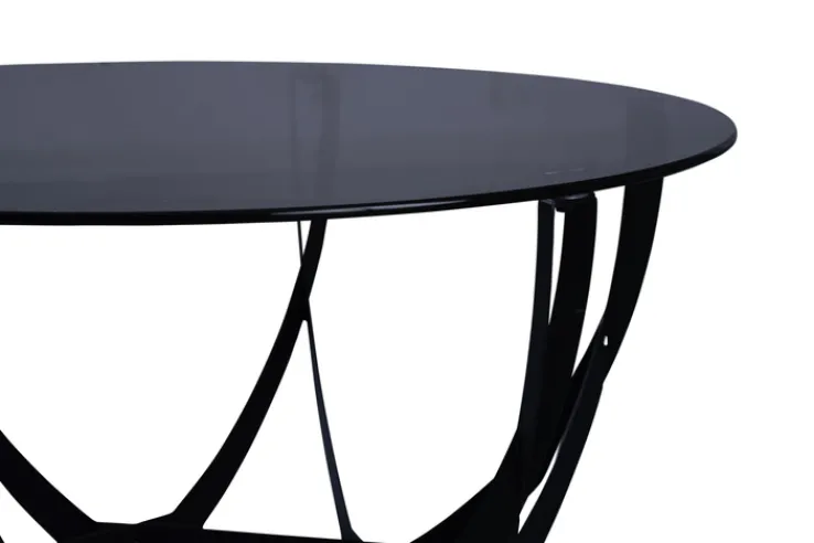 Die runde Form des Tisches harmoniert perfekt mit der modernen Einrichtung und fügt sich nahtlos in verschiedene Wohnstile ein. Das einzigartige Design des Metallgestells, das sich in geschwungenen Linien präsentiert, verleiht dem Tisch eine besondere Dynamik. Mit einem Gewicht von 13,05 kg ist der Tisch stabil und dennoch leicht genug, um ihn bei Bedarf umzustellen.