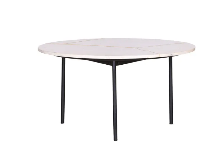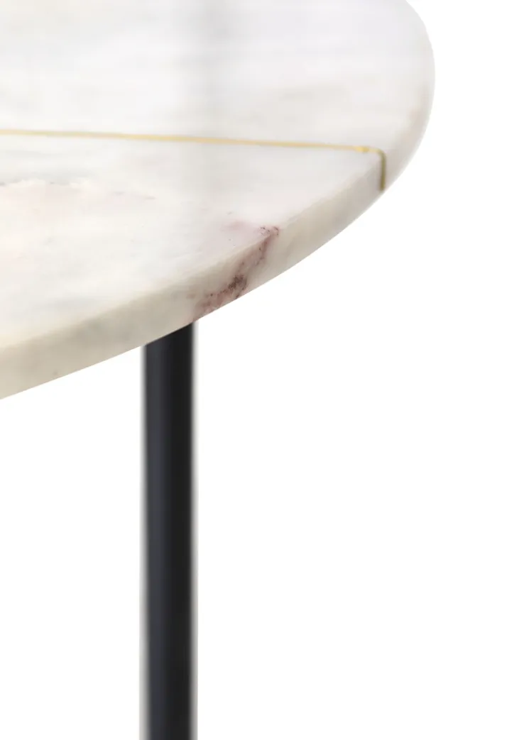 Das Gestell aus schwarzem Metall bildet einen ansprechenden Kontrast zur hellen Tischplatte und unterstreicht den modernen Stil des Tisches. Mit einer Breite, Länge und einem Durchmesser von jeweils 80 cm sowie einer Höhe von 42 cm bietet der Tisch ausreichend Platz für Dekorationen oder alltägliche Gegenstände. Die lackierte Oberfläche des Metalls sorgt für zusätzlichen Schutz und Langlebigkeit. Dieser Couchtisch ist eine ideale Wahl für alle, die Wert auf Design und Funktionalität legen.