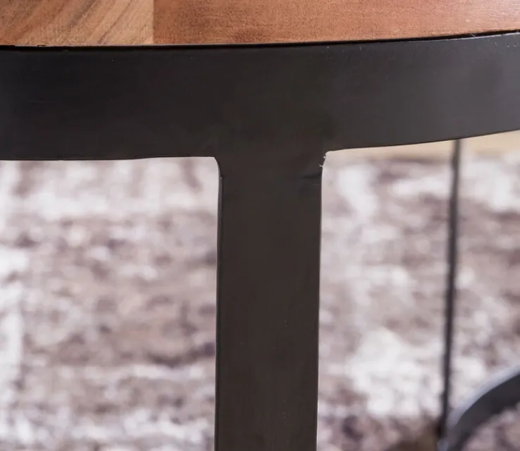 Das Couchtisch rund 2er-Set Schwarz/ Akazie massiv besteht aus zwei Hoztabletts auf einem Metallgestell. Das Ensemble misst im Durchmesser 48 bzw. 45 cm, in der Höhe 45 bzw. 40 cm. Jeder Tisch kann mit 50 kg belastet werden.