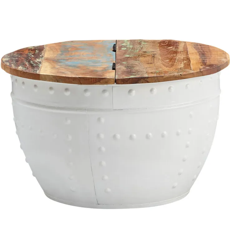 Mit seinem runden Design eignet sich dieser Couchtisch gut als Mittelpunkt im Wohnzimmer. Die Kombination aus Weiß und dem bunten Muster sorgt für eine frische und moderne Optik. Die massiven Eigenschaften des Mangoholzes tragen dazu bei, dass der Tisch nicht nur optisch ansprechend, sondern auch stabil und langlebig ist.