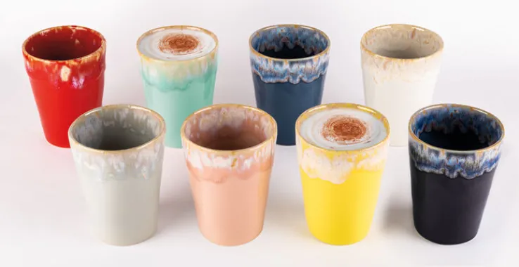 Der Becher aus feinem Feinsteinzeug ist handgefertigt und innen und außen aufwendig glasiert. Durch die attraktive Reaktiv-Glasur ist jeder Becher ein Einzelstück. Der Becher ist zum Aufwärmen in der Mikrowelle geeignet und ist spülmaschinenfest. #meinporta #portamöbel #colorfulliving