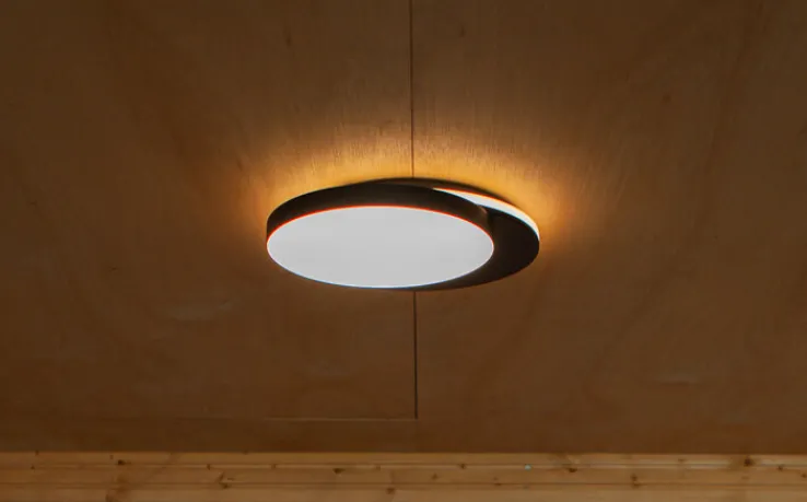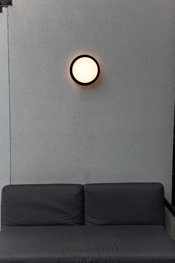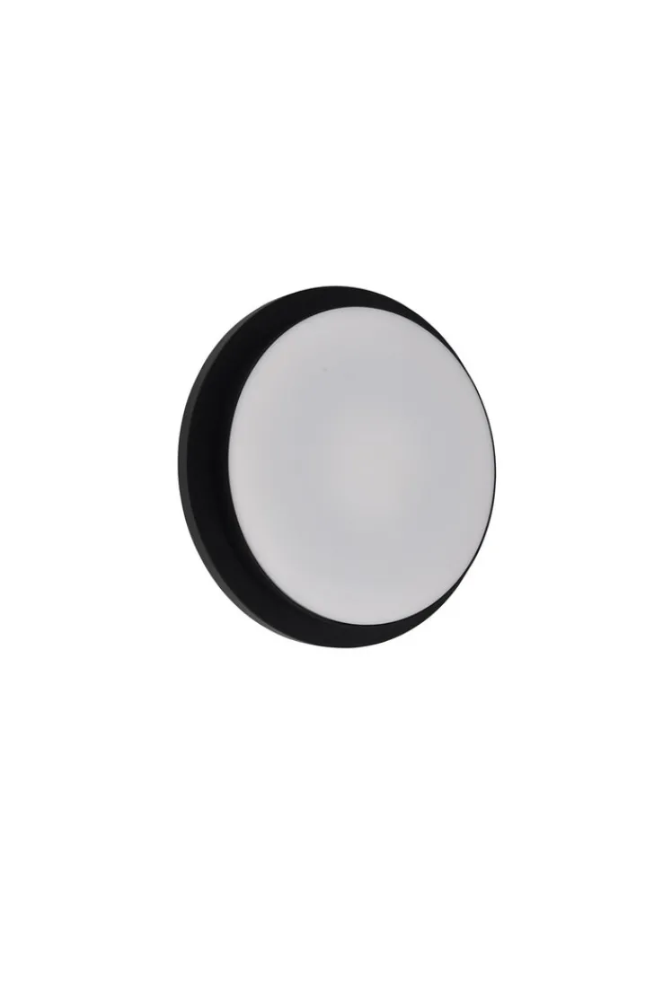 Die ECO-LIGHT LED Außenwandleuchte GOLETA hat einen Durchmesser von 30 cm und ist 6,3 cm hoch. Sie ist aus Aluminiumguss in Grau und weißem Kunststoff.
