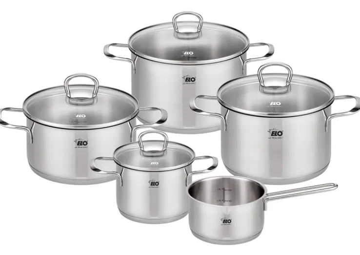Dieses silberfarbige Set von ELO ist für die Spülmaschine sowie den Backofen ohne Deckel bei bis zu 240 °C geeignet. So lassen sich verschiedene Kreationen zaubern: Denn das 5-teilige Topf-Set JASPIS besteht aus vier Töpfen in unterschiedlicher Größe mit Deckel sowie einem Stieltopf ohne Deckel. Der Bratentopf und ein Kochtopf haben einen Durchmesser von 20 cm. Ein weiterer Kochtopf sowie der Stieltopf haben einen Durchmesser von 16 cm. Zudem umfasst das Set einen Kochtopf mit einem Durchmesser von 24 cm.