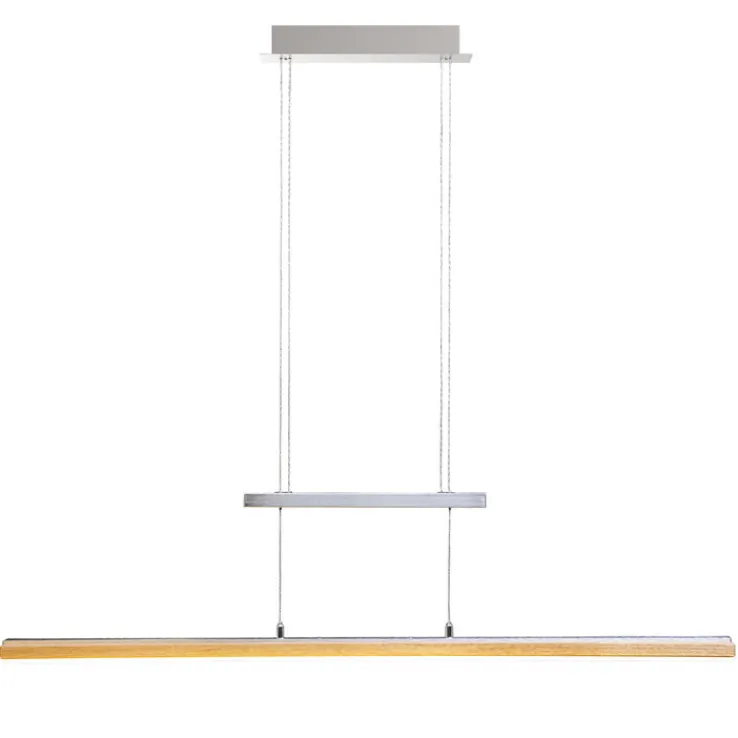 Die nickelfarbige ELOBRA CCT LED Pendellampe PANAMA setzt mit ihrer Holzapplikation dekorative optische Akzente in Ihrem Wohnbereich.
