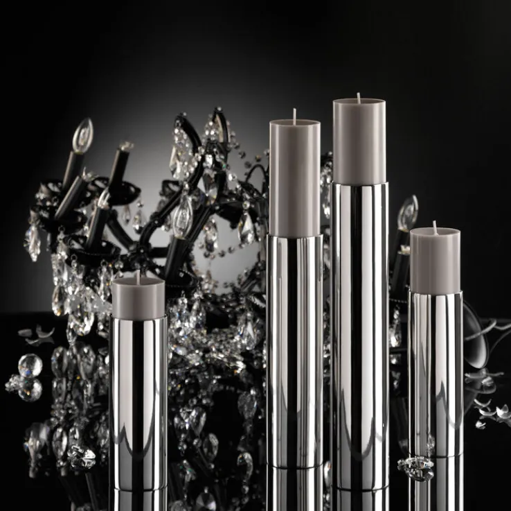 Der formschöne Kerzenständer EVIVA hat eine Höhe von etwa 35 cm und passt in moderne oder klassische Einrichtungen. Durch seine polierten Oberflächen ist der Kerzenständer aus hochwertigem Edelstahl ein Blickfang auf Kommoden oder Sideboards im Wohnzimmer. Auch für den Beistelltisch im Esszimmer ist der dekorative Kerzenständer ideal und sorgt mit einer gegossenen Stumpenkerze für eine angenehme und stimmungsvolle Atmosphäre.