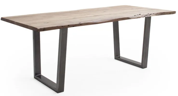 Der Esstisch CALABRIA hat eine Größe von 180 x 100 cm und ist ein massiv gearbeitetes Modell. Er eignet sich aufgrund seiner Maße insbesondere für großzügige Wohnlandschaften. Der Tisch zeigt sich mit klaren Kanten und kann als Esstisch in einem Esszimmer oder auch Wohnzimmer gestellt werden. Seine kufenförmigen Beine bieten umfangreichen Raum unter der Tischplatte, so dass die eigenen Beine auch mühelos ausgestreckt werden können.