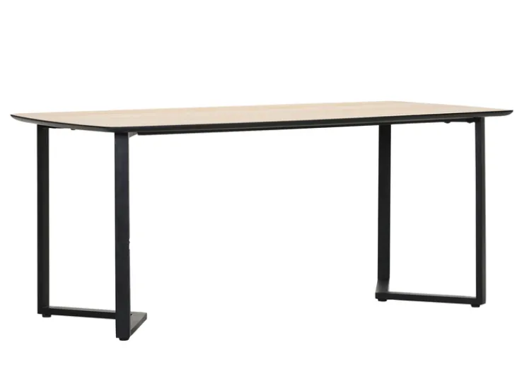 Die Tischplatte aus Eiche Echtholzfurnier verleiht dem Tisch eine natürliche und warme Ausstrahlung, während das Kufengestell aus lackiertem Metall in Schwarz für Stabilität und einen modernen Look sorgt. Der Tisch besticht durch seine rechteckige Form und die harmonische Kombination aus braunen und schwarzen Farbtönen. Die Verwendung von mitteldichter Faserplatte (MDF) als Holzwerkstoff unterstreicht die hochwertige Verarbeitung.