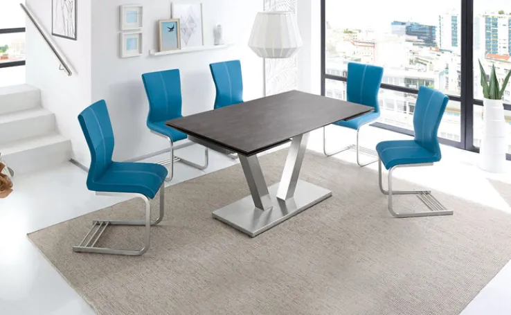 Der ausziehbare Esstisch der Serie TABLET vereint modernes Design mit praktischer Funktionalität. Mit einer Breite von 100 cm, einer Höhe von 77 cm und einer Länge von 160 cm bietet er ausreichend Platz für gesellige Runden. Bei Bedarf lässt sich die Tischlänge durch den Synchronauszug auf bis zu 250 cm erweitern, was ihn ideal für größere Anlässe macht. Die rechteckige Tischplatte aus anthrazitfarbener Keramik verleiht dem Tisch eine elegante und zugleich robuste Oberfläche, die sich harmonisch in verschiedene Wohnstile einfügt.