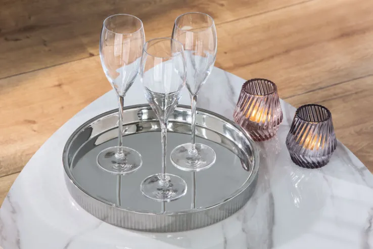 Das runde Fink Deko Tablett MONTEGO ist mit seinem minimalistischen Design vielseitig kombinierbar und kann zudem vielseitig eingesetzt werden.