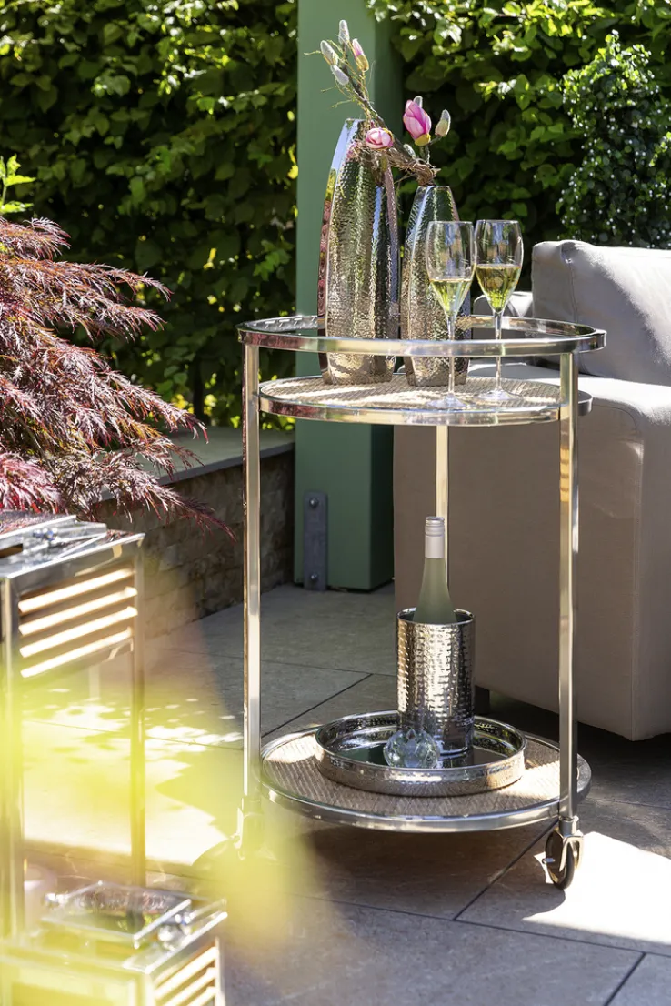Ideal ist das Fink Tablett NASSAU mit seiner silberfarbigen Oberfläche auch um einen schönen Tropfen Wein oder einen prickelnden Champagner darauf abzustellen. Damit avanciert das Tablett schnell zum geschätzten Begleiter innerhalb der eigenen Küche, im Wohn- sowie im Esszimmer. Die strukturierte Oberfläche an der Seite schafft einen spannenden Kontrast gegenüber der hochreflektierenden Grundfläche des Tabletts.