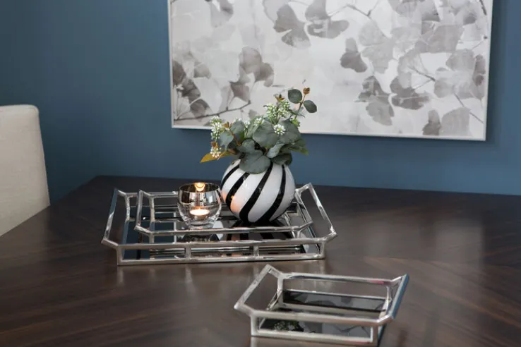 Das rechteckige Fink Tablett PIANO im Format 36 x 30 cm ist ein praktischer Helfer für jeden Tag. Durch die Kombination aus Edelstahl und Glas hat das Tablett ein elegantes Design. Das Tablett eignet sich für den sicheren Transport von Speisen oder Geschirr ins Wohn- oder Esszimmer. Mit dem hohen Rahmen ist auch das Tragen von größeren Gefäßen sicher,