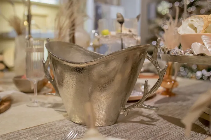 Ob für die Hochzeit, den Geburtstag oder eine Gartenparty – der edle Flaschenkühler HIRSCH ist zu jedem festlichen Anlass ein echter Hingucker. Vor allem auf einer festlich gedeckten Tafel in der Weihnachtszeit lässt sich mit dem dekorativen Accessoire ein toller Akzent setzen. Der Champagnerkühler mit Geweihapplikation eignet sich darüber hinaus auch hervorragend als Geschenk für Jagdliebhaber und alle, die Spaß an praktischem und zugleich formschönem Barzubehör haben.