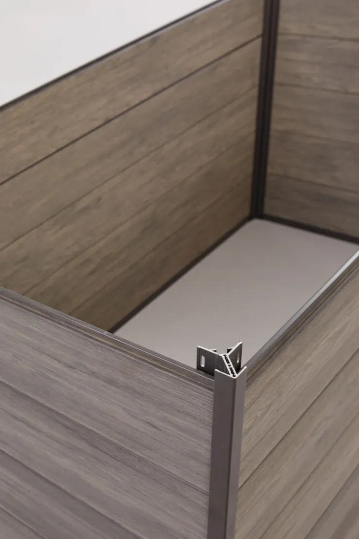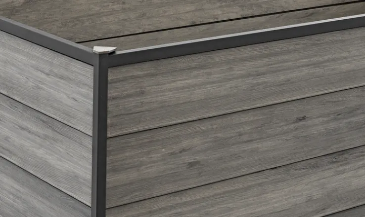 Material: HolznachbildungKunststoffMetallRecycling-MaterialOptik: HolzdekorMetallart: AluminiumHolzwerkstoffart: Wood Plastic Composite (WPC)