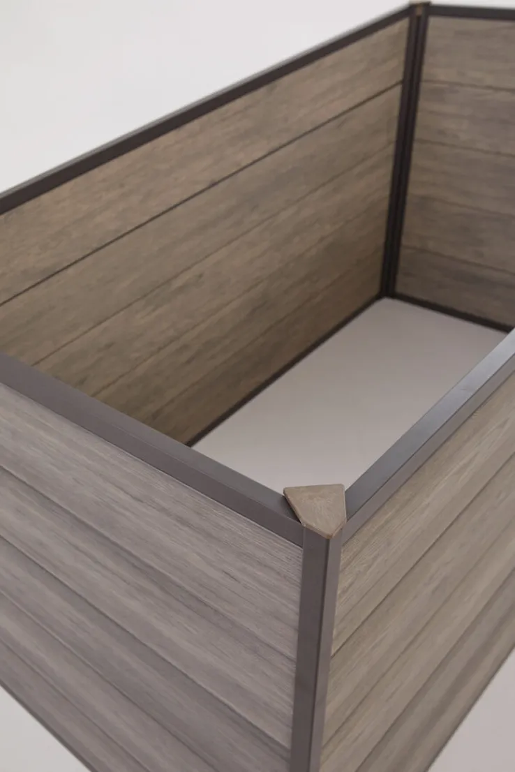 Die Marke Garden FLAIR hat mit dem großen Hochbeet RUTH ein Modell im Angebot, das reichlich Platz für Nutz- oder Zierpflanzen bietet. Überdies ist es in seiner zeitlos schlichten Form ein optisches Highlight im Garten. Die Lamellen für die Seitenwände bestehen aus WPC-Kunststoff und bilden eine Holzstruktur inklusive Maserung täuschend echt nach. Sie werden einfach in den verschraubbaren Metallrahmen gesteckt. Natürlich sind alle Materialien UV-beständig sowie wetterfest.