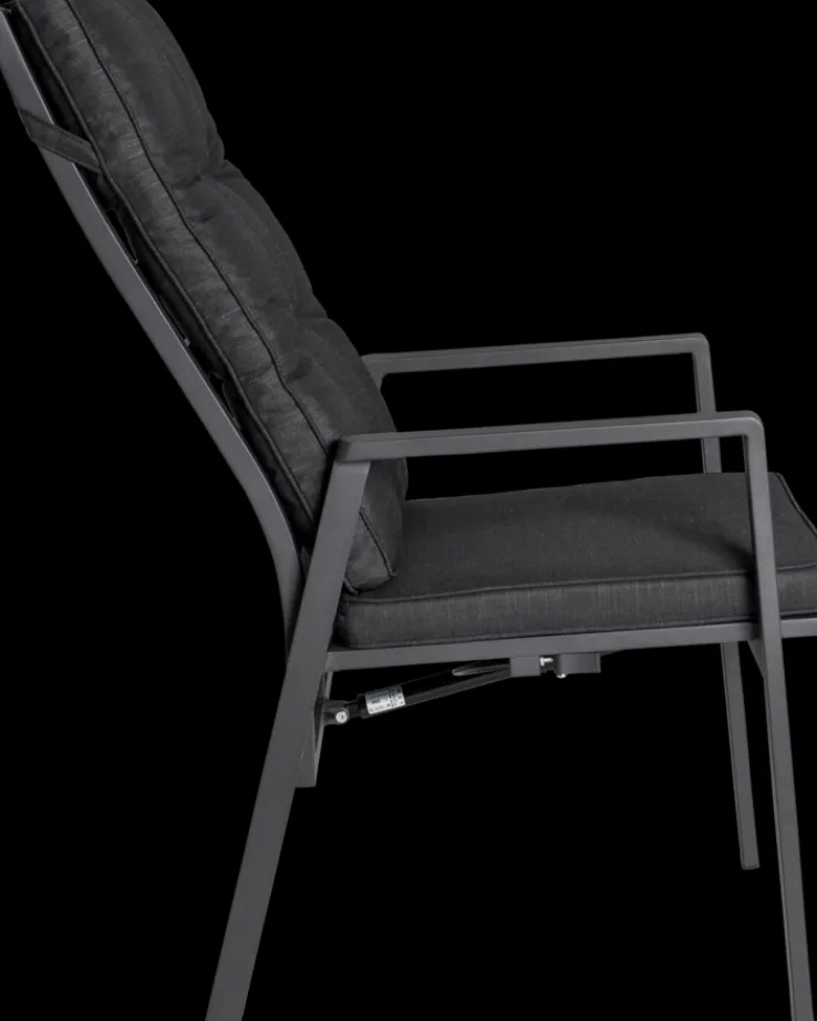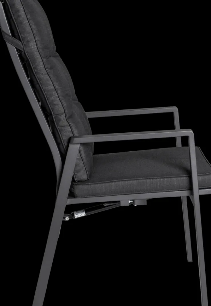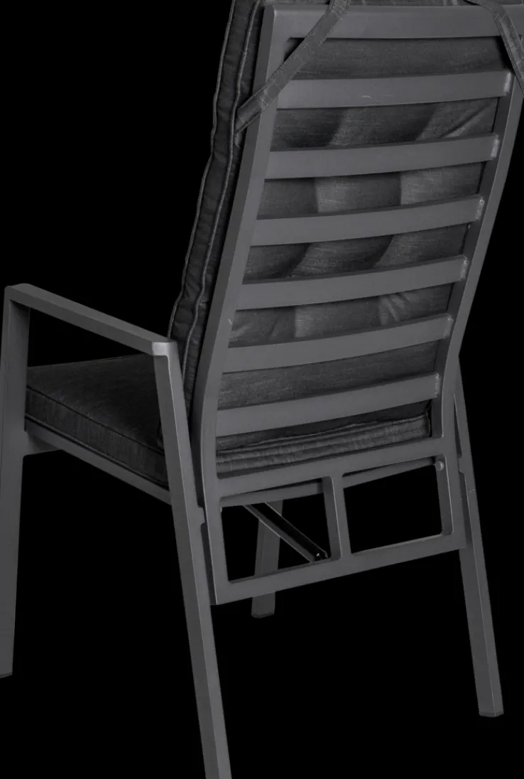 Eigenschaften Gartenmöbel: Armlehnen inklusiveDiningHochlehnerPolsterauflage inklusivePositionsstuhlRückenlehne verstellbar durch Knopfdruck seitlich der Sitzfläche