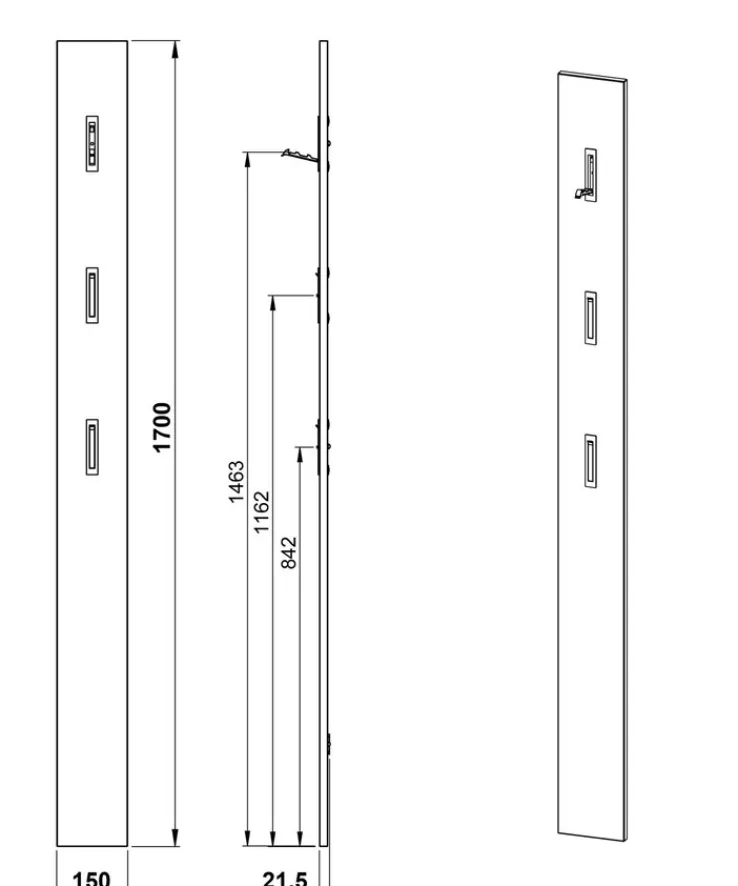 Breite: 15 cmHöhe: 170 cmTiefe/Ausladung: 3 cm