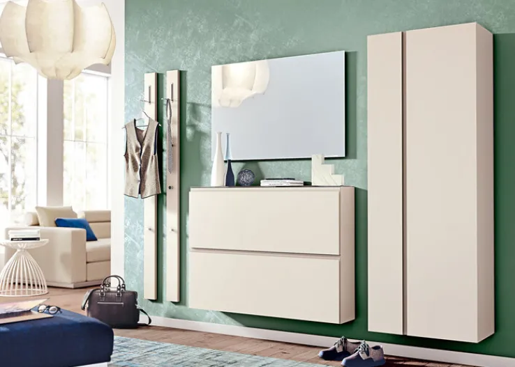 Hier können Sie diverse Gegenstände unterbringen, die Sie in Ihrer Garderobe benötigen. Der Mehrzweckschrank bietet zwei Drehtüren, hinter denen sich recht viel Platz verbirgt. Er gehört zu einem Garderobenprogramm GARDASEE, das außerdem aus einem Paneel, einem Spiegel und einem Schuhschrank besteht. Der harmonische Farbton Beige oder Sand passt sehr gut in einen dunklen Flur, denn er bringt hier etwas Farbe und Helligkeit mit ein und wertet ihn damit auf. Zudem lädt die angenehme Oberfläche dazu ein, die Türen zu öffnen beziehungsweise den Schrank anzufassen. Auch schauen wir das schöne Möbelstück gern an. Der Drehtürenschrank ist in eine schmalere und eine breitere Tür aufgeteilt, was zu einer besonders schönen Optik beiträgt. Da er so ansprechend aussieht und als Mehrzweckschrank gedacht ist, können Sie ihn natürlich auch als Solitär und an anderer Stelle aufstellen, beispielsweise in einem ausgebauten Keller, wo Sie ebenfalls viele Kleinigkeiten aufbewahren. Falls Sie einen zweiten Eingang ins Haus besitzen, macht er auch hier eine gute Figur.