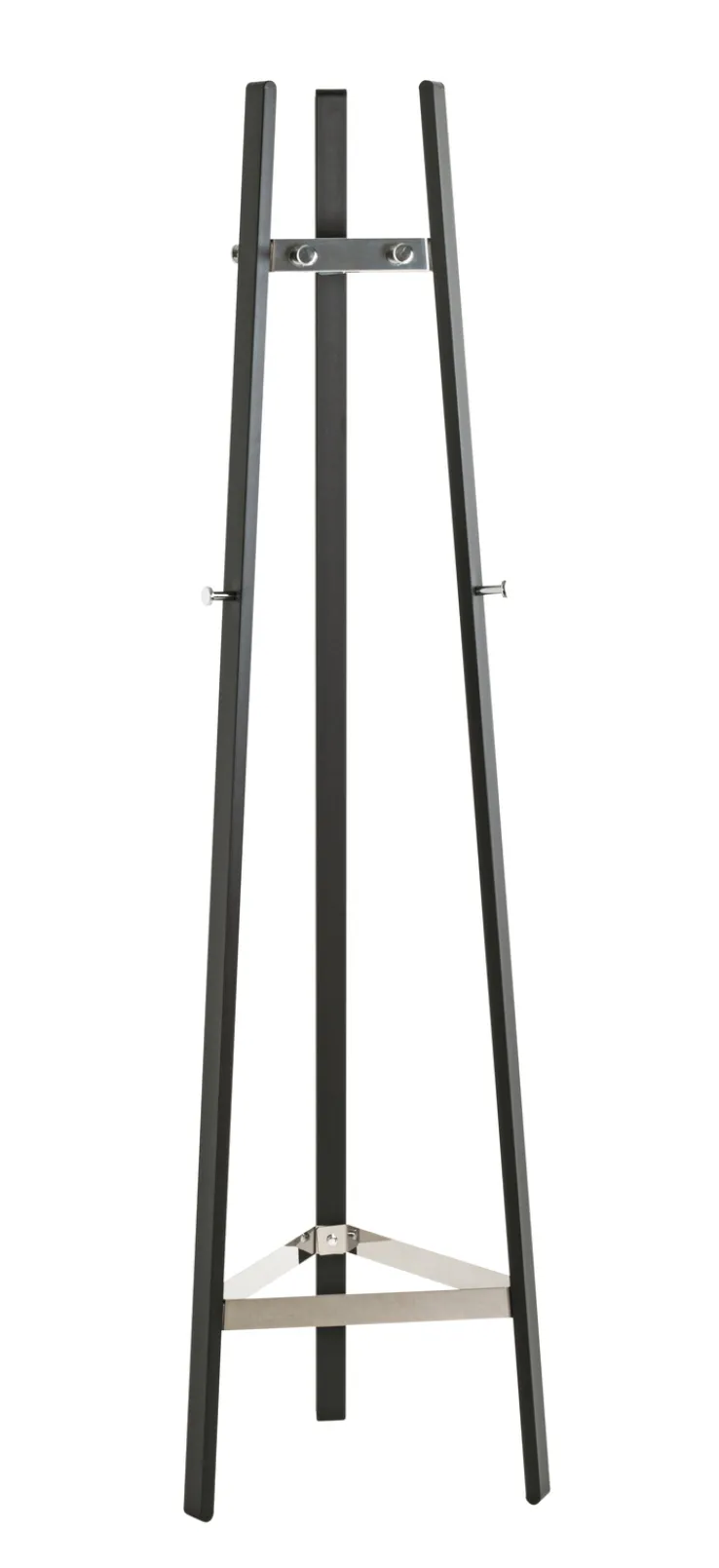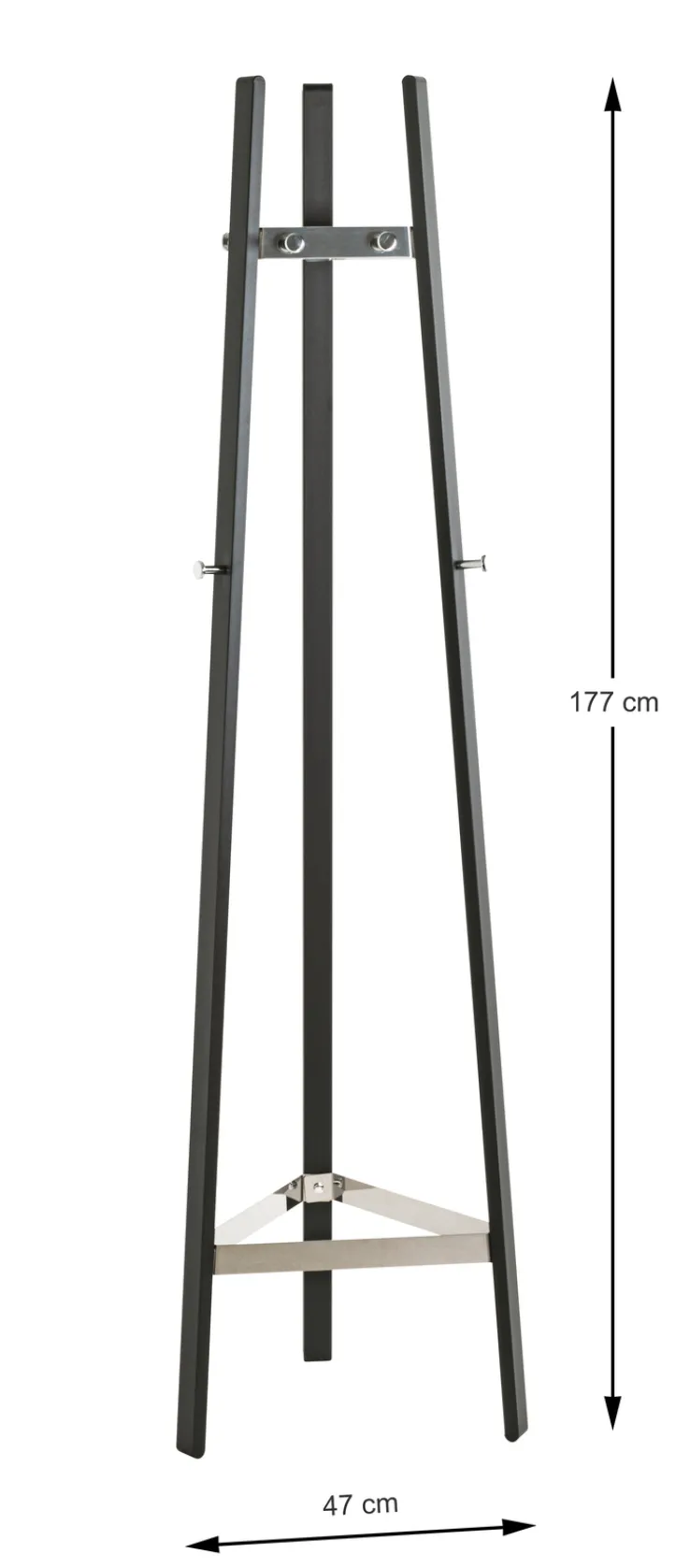 Dank den flachen Querverstrebungen hat der Ständer eine hohe Stabilität, weshalb er auch beim Behang mit schwerer Kleidung nicht ohne Weiteres umkippt. Das pulverbeschichtete und somit gegen Korrosion geschützte Modell eignet sich für Flure und Bürolandschaften sowie für Betriebe wie Bistros in der gehobenen Gastronomie. Ein passender Wandspiegel kann separat zum Garderobenständer PAUL bestellt werden.