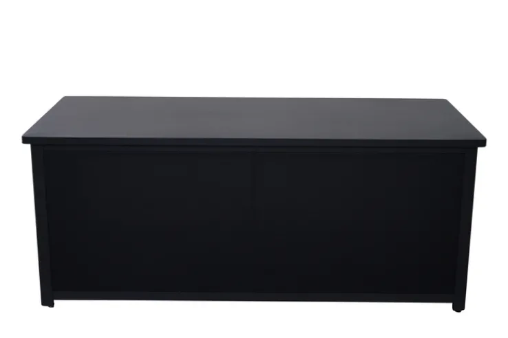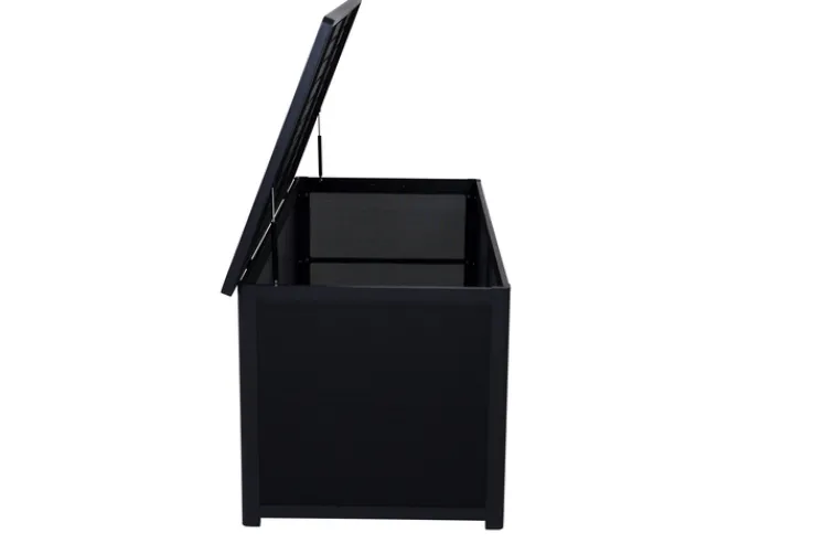 Die Auflagenbox GRADINE M bietet eine praktische und stilvolle Lösung zur Aufbewahrung im Garten. Mit einer Breite von 135 cm, einer Höhe von 59 cm und einer Tiefe von 75 cm bietet sie ausreichend Stauraum für Kissen und andere Gartenutensilien. Die Box ist in einem eleganten Schwarz gehalten, das sich nahtlos in verschiedene Gartenstile einfügt. Das Design ist rechteckig und passt perfekt zu einem modernen, industriellen oder skandinavischen Stil. Gefertigt aus robustem Metall und Kunststoff, ist die Auflagenbox sowohl langlebig als auch wetterbeständig. Die pulverbeschichtete Oberfläche aus Aluminium sorgt für zusätzlichen Schutz und eine ansprechende Optik. Die Box ist klappbar, was die Handhabung erleichtert und bei Nichtgebrauch Platz spart. Ein weiteres praktisches Merkmal ist der Stauraum, der für Ordnung im Außenbereich sorgt.