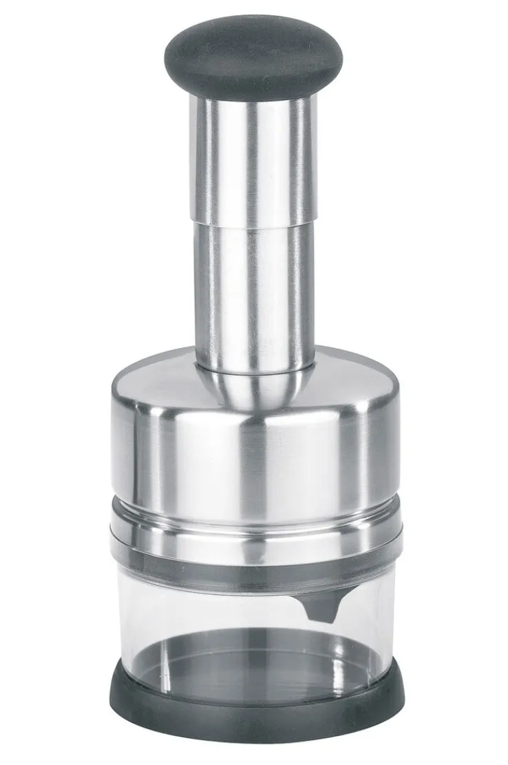 Der Hacker ist 21,7 cm hoch, steht absolut rutschfest und bietet Raum für etliche Kräuter oder Gemüsestückchen. Die Messer sind besonders scharf, sodass eine hohe Schnittqualität für feine Endergebnisse gegeben ist. Der Hacker besitzt einen seitlichen Abstreifer und einen Deckel für den Behälter, um die gehackten Stücke aufzubewahren. 250 ml Fassungsvermögen sorgen dafür, dass Sie nicht jedes Mal eine kleine Menge hacken müssen, sondern Ihr Schnittgut eine Weile aufheben können. Nach Gebrauch geben Sie den GEFU Gemüse- und Kräuterhacker einfach in die Spülmaschine. Das Küchengerät wird Ihnen sicher bald unentbehrlich sein, denn per Hand lassen sich solche Ergebnisse nicht erzielen. Dabei brauchen Sie Kräuter und Gemüse bestimmt öfter, ob für Salate, Soßen oder Suppen. Zudem ist der Hacker ein schönes Geschenk für Menschen, die gern und viel kochen, vielleicht gerade eine neue Küche bekommen haben, aber solch ein Gerät noch nicht besitzen.