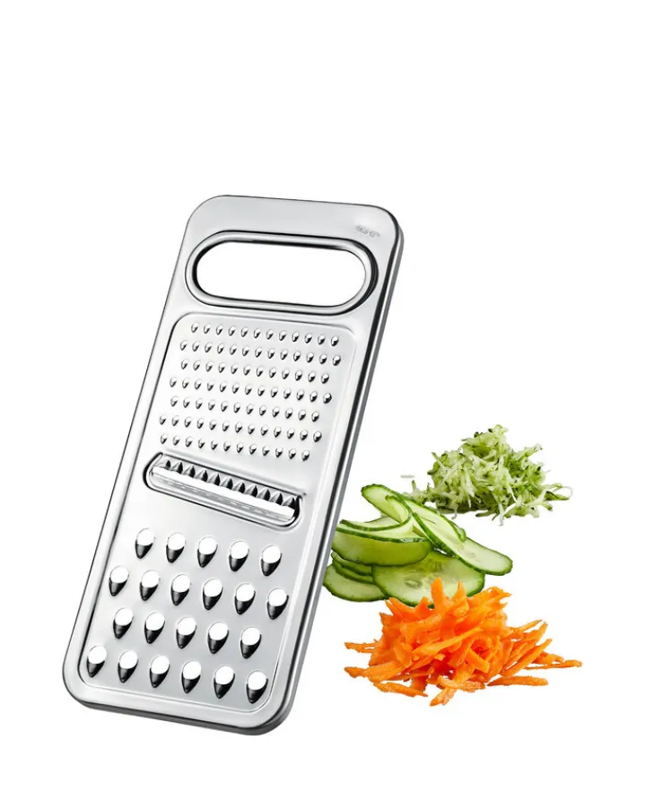 Die ORIGINAL Universalreibe von GEFU ist der praktische Helfer für die Küche von heute. Die silberfarbige Reibe im klassischen Design ist zum Reiben für Obst, Gemüse aber auch Käse und Gewürzen bestens geeignet. Durch die Ausstattung mit 3 verschiedenen Reibeflächen ist die Vorbereitung der Lebensmittel in verschiedenen Variationen möglich. Für eine einfache Handhabung ist die Reibe mit einer großen Öffnung ausgestattet.