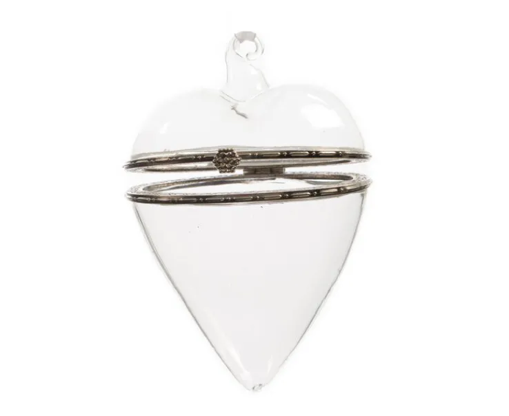 Der Anhänger besteht aus Glas und hat die Form eines Herzens. Er lässt sich beispielsweise am Weihnachtsbaum oder im Fenster aufhängen. Der Glashaken passt perfekt zum restlichen Design. Dank des eingebauten Scharniers lässt sich der Anhänger öffnen. Im Inneren kann beispielsweise eine Kleinigkeit zum Naschen untergebracht werden. Doch auch, um Schmuck zu verschenken, ist er hervorragend geeignet. Der elegante silberfarbige Verschluss rundet das filigrane Designs des Anhängers auf stilsichere Art und Weise ab.