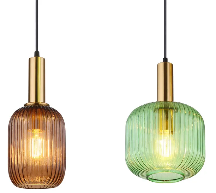Die GLOBO Retrofit Pendellampe NORMY vereint den goldfarbigen Metallkorpus mit vier extravaganten Lampenschirmen aus gerilltem Glas in den Farben Braun, Grün, Rot und Schwarz. Sie ist für 60 Watt AGL oder Retrofit Glühbirnen mit E27 Fassung geeignet und hat einen Stromverbrauch von 240 Watt. Die Pendelleuchte sorgt mit ihren farbigen Lampenschirmen für ein absolut blendfreies Licht und leuchtet dabei Ess- und Wohnzimmertisch perfekt aus. Dank des stylischen Looks ist die Pendellampe für modern und klassisch eingerichtete Wohnräume geeignet.