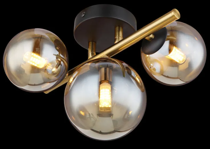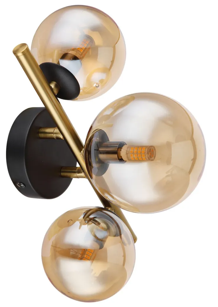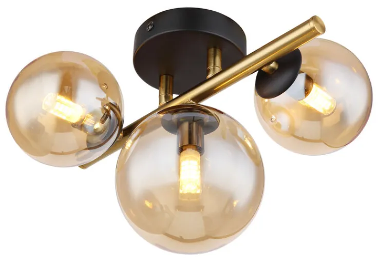 Die LED-Lampe RIHA von GLOBO hat ein außergewöhnliches, modernen Design in den Farbtönen Amber, Schwarz und Messing. Sie ist 21 cm breit und 28 cm hoch und kann als Wand- und Deckenleuchte zum Einsatz kommen.