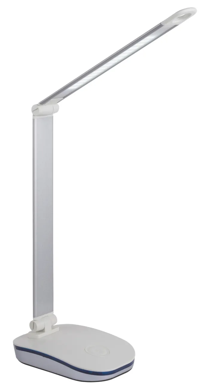 Die moderne GLOBO LED-Tischleuchte TALISA präsentiert sich in eleganter Silberfarbe, ist mehrfach verstellbar und lässt sich als Powerbank einsetzen.